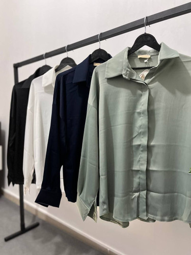 شومیز مجلسی زنانه ساتن کجراه تک رنگ در سایزبندی