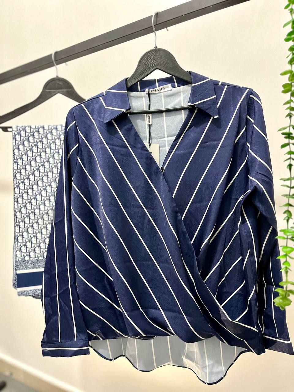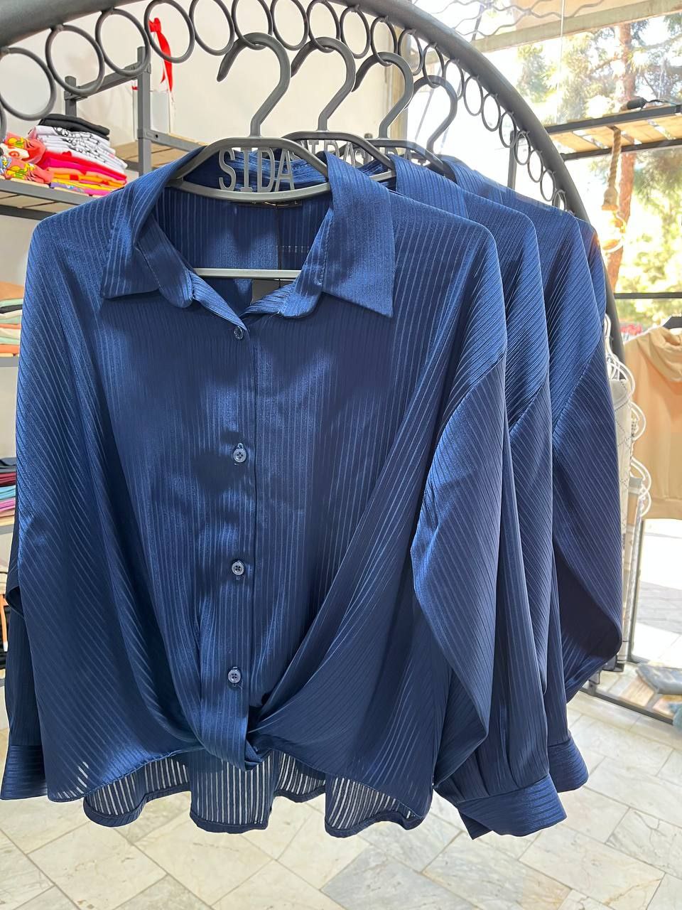 شومیز مجلسی زنانه حریر ساتن راهراه مدل پایین گرهای