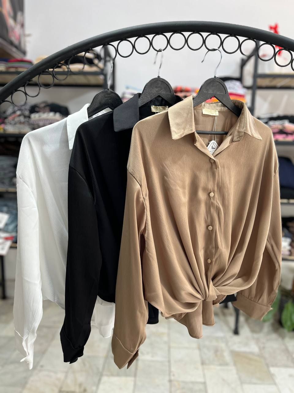 شومیز مجلسی زنانه ساتن کجراه تک رنگ در سایزبندی